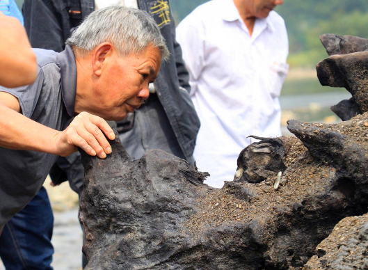 农民在河边挖出千年黑木 专家鉴定为东方神木