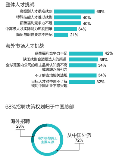 人民网旧金山11月17日电(记者 陈星星)国企出海,人才招聘是个大难题。66%的受访国有企业表示,在海外难以招聘到高级别的人才;40%的受访国有企业表示,寻找海外特殊技能人才有困难。