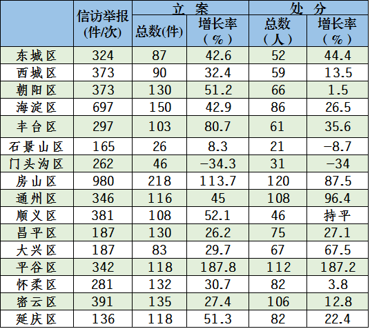 人民网北京11月18日电 据中央纪委监察部网站消息,2016年1至10月北京市各级纪检监察机关共接受纪内信访举报12182件(次),立案2388件。给予党纪政纪处分1720人,其中,厅局级32人,县处级366人,乡科级345人。移送司法73人。查处违反中央八项规定精神和市委实施意见364人,“小官贪腐”328人。