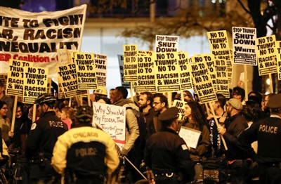 自唐纳德·特朗普赢得美国大选后,包括纽约、芝加哥、华盛顿、波士顿、奥斯汀、费城、波特兰、西雅图、旧金山、洛杉矶在内的数十个地区发生抗议活动并引发冲突。有消息称,部分抗议者把愤怒发泄到了华人身上,对当地唐人街上的多栋建筑物及商铺进行了喷漆和打砸,并进行言语和人身攻击。