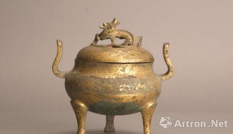 明独角蟠龙盖鎏金三足熏香铜炉