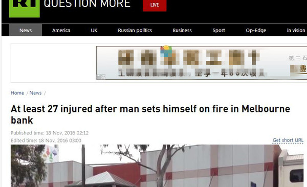 据今日俄罗斯11月18日报道,一男子在墨尔本Springvale的联邦银行门口点火自焚,目前已经造成至少27人受伤。