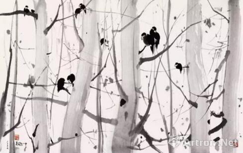一群鹤在走,跃,舞,翔……题名《鹤舞》,作者之意在舞不在鹤,借鹤挥舞。这舞,亦无舞台起舞之规范,只是墨之舞,块面点线之共舞,鹤成了道具,或幌子。有心的观众当会联系到我画过的老虎高原,我在老虎与高原间尝试过往返追捕。
