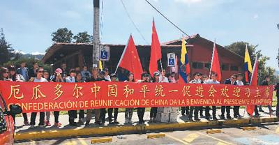 图为厄瓜多尔华侨华人迎接习近平主席到访。照片由傅杨伟提供