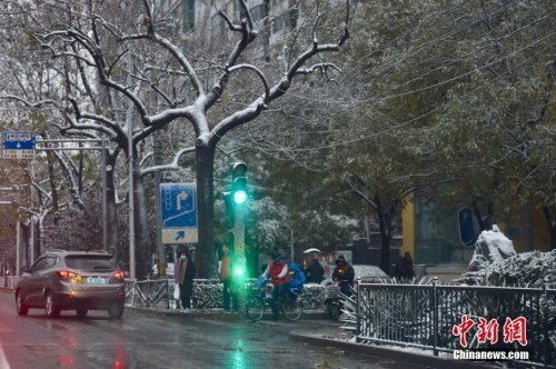 资料图:小雪节气到来前,北京迎来首场降雪。市民全副武装迎接周一早高峰。中新网记者 金硕 摄
