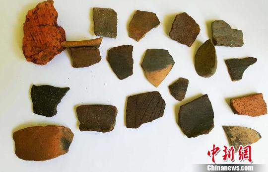 遗址处散落的大量石器和陶片?!∷蚊鳌∩?/strong>