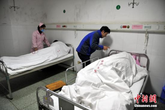 11月24日,两名幸存工人在江西丰城市人民医院脑外科接受治疗。当天上午7时30分许,江西省宜春丰城电厂三期扩建工程D标段冷却塔平桥吊倒塌,造成模板混凝土通道坍塌。刘占昆 摄