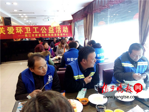 记者了解到,前来就餐的50名镇江一线环卫工人中,有30人都是公益组织的志愿者,通过这种方式召集来的。