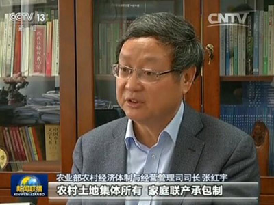 农业部农村经济体制与经营管理司司长 张红宇:改革开放之初,我们实行的是集体所有,家庭联产承包制,是“两权分离”,解决的是当时农民生产积极性问题,现阶段我们叫集体所有,农户承包,多元经营,叫“三权分置”,重在解决效率问题,重在解决现代农业的资源配置问题,所以我们讲“三权分置”是农村土地制度的又一重大制度创新。