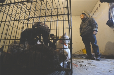 11月23日,龙泉驿区十陵镇来龙村,工作人员将现场的猫带走,黄平富站在一旁