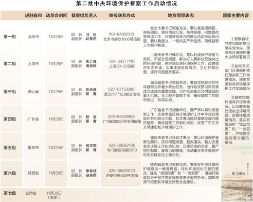 至此,经党中央和国务院批准,2016年第二批环境?;ざ讲旃ぷ饕讶嫫舳?,6个中央环境保护督察组已经完成督察进驻,将对北京、上海、湖北、广东、重庆、陕西等6个省(市)开展为期一个月左右的环境?;ざ讲旃ぷ?。