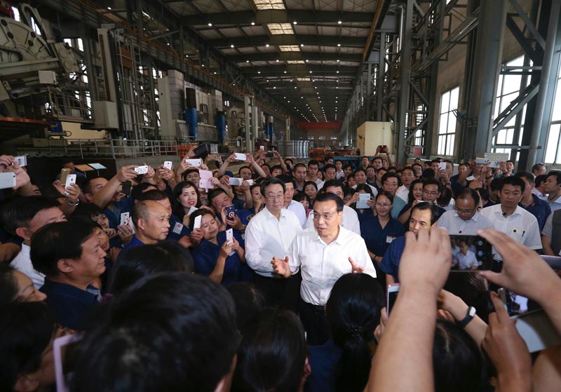 2015年9月23日,李克强在河南考察洛阳矿山机械厂。(资料图)