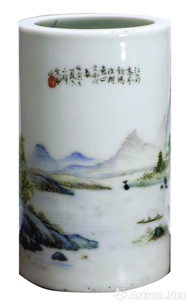 2004年,在温州的一个小型拍卖会上,我看上了一件小器大样的笔筒:胎薄釉润,山水通景,几行蝇头小楷,一幅诗书画印俱全的江南山水尽收眼底。当时拍卖的圈子很小(或许大家都喜欢逛地摊捡漏),百来件拍品摆在那里,送拍人寸步不离地守在旁边看护着,生怕被人偷走或恶意购买者“倒场”(贬低)后捡漏。那场景犹如上世纪八十年代机关大院里工会替职工充煤气,大伙儿都放下手头的活儿守着自己的空罐子一样。