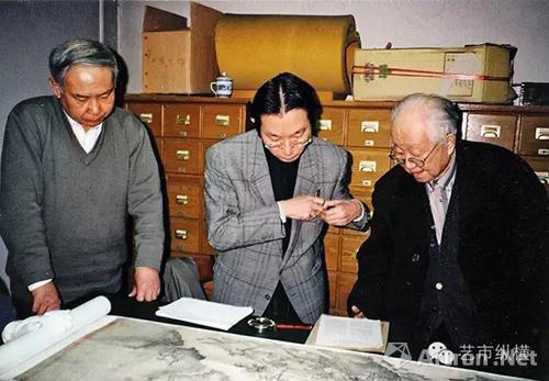 和启功先生一起鉴定书画 左刘东瑞 右启功