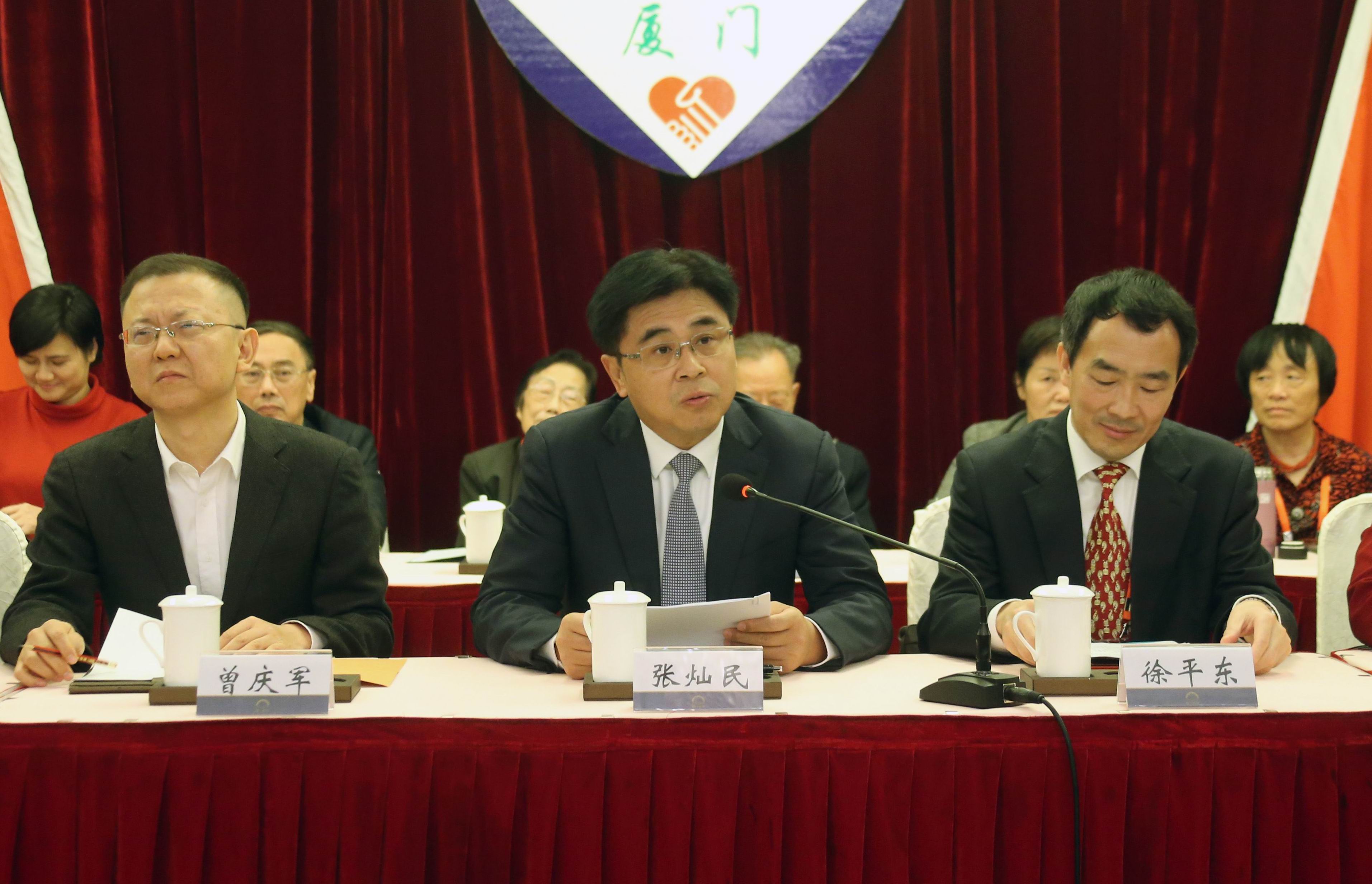厦门市委常委、厦门市委统战部部长张灿民(中)讲话