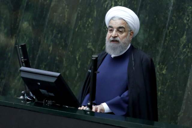 12月4日,伊朗总统哈桑·鲁哈尼在伊朗议会发表演讲。(新华/法新)