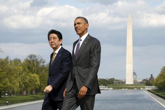 资料图:日本首相安倍晋三与奥巴马在华盛顿会晤