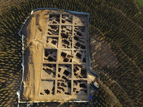 让人兴奋的是,首次发掘出了西汉早期的国家祭天台。考古表明,这处建筑整体为圜丘状,通高5.2米,基座直径23.5米,从其顶面迹象和周围出土的秦汉时期等陶质屋顶建筑构件判断。其外围有一个圜状围沟,其整体呈梯形,上下口宽5至4米。围沟之外则有三重递降的台阶平地,临近的踩踏面十分坚实,勘探时发现存从不同方向通向夯土台的多条通道。这与已知文献中秦汉时期的国家祭天台——“畤”(古代祭祀天地及五帝之固定场所)的条件完全相符。