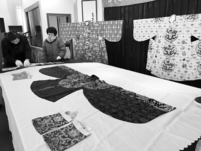 昨天,耗时两年复制完成的9件定陵出土丝织品在十三陵亮相。这批复制品不仅有帝后龙袍、衮服,还有护膝、膝袜等服饰配件。明年起,这些复制品将在定陵博物馆不定期展出。