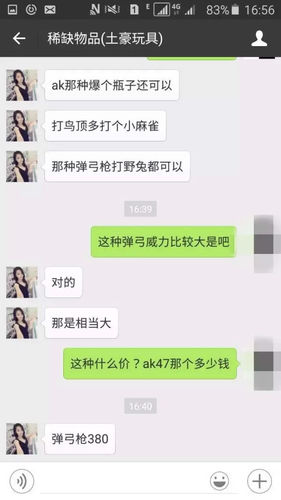 卖家告诉记者,一把AK47仿真枪要360元,不过这种枪威力并不算太强?!罢庵直銎孔踊剐?,打鸟就不行了,顶多打个小麻雀?!彼婧舐艏矣秩刃牡叵蚣钦咄葡鹆嘶档?,称其威力比AK47要强得多,“这种弹弓枪不只能打鸟,打野兔都可以,一把380元。”