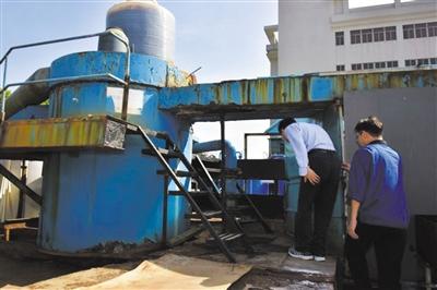 图为督察组下沉揭阳市现场抽查丽达纺织公司治污设施运行情况。