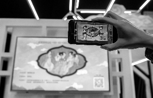 昨天,在活动现场,只需用手机对准展区的韩熙载夜宴图,会动的表情包就会出现在手机屏幕前。记者 史春阳/摄