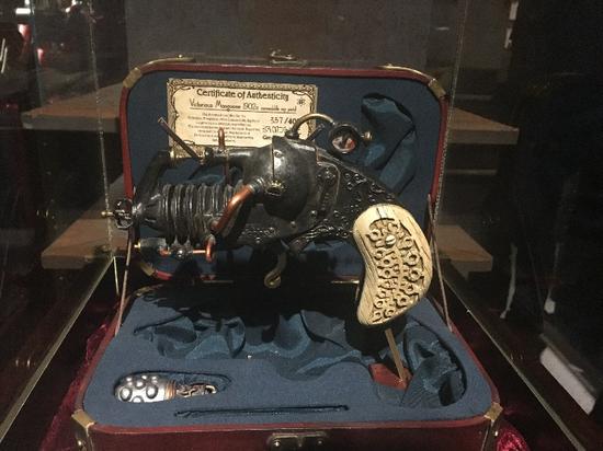 《格特博士的世界》作者设计师葛雷格与他最喜欢的武器(模型)合影