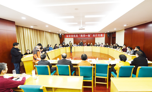 为进一步促进机关学习型党组织建设,全面提高机关党员干部思想政治素质和业务能力水平,努力营造浓厚学习氛围,使机关政治理论、业务知识的学习更加制度化、规范化、系统化,更好地为省政协履行职能服务,12月9日和14日,省政协机关举办两场“两学一做”知识竞赛,机关18个党支部的书记和支部代表队分别参赛。省政协机关党组书记、秘书长肖为群,提案委员会主任杨斌,社会和法制委员会主任张莉,办公厅主任、机关党委书记杨春燕,副秘书长徐良平出席活动。