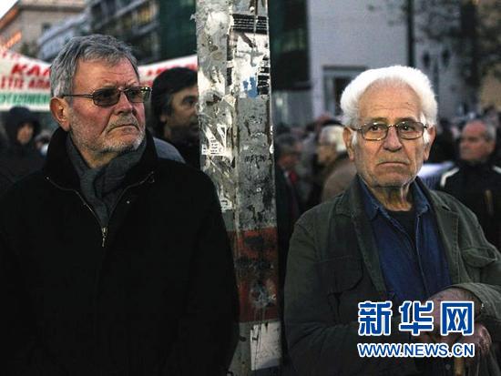 12月15日,希腊首都雅典,退休老人集会抗议严厉紧缩措施。(新华社发)