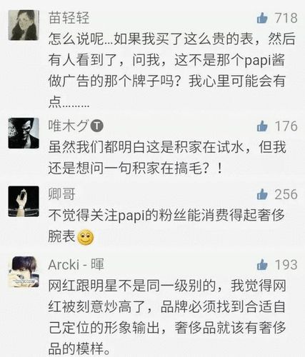 让网友觉得papi酱气质不符的主要原因是,papi酱塑造的形象不那么高端,而这个腕表品牌高贵、奢侈,papi酱这样的逗比段子手网红很不搭。