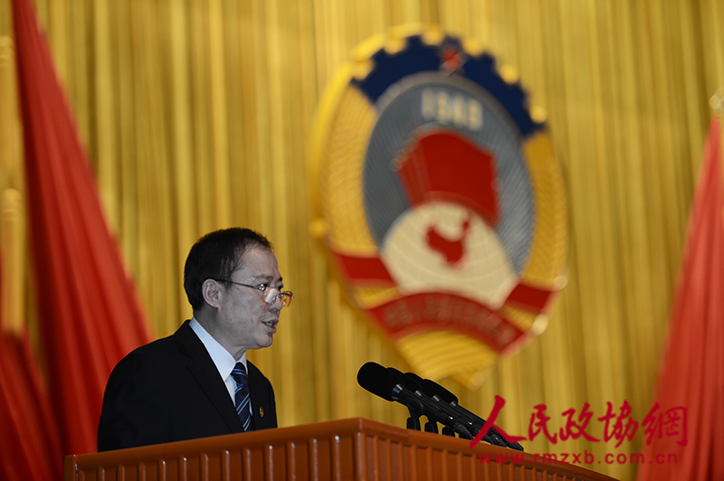 北京市东城区政协主席邵鹏做《十三届区政协常务委员会工作报告》。人民政协网记者 田福良 摄