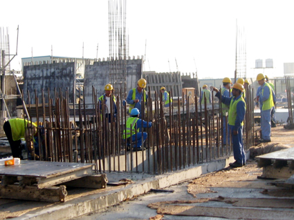 施工现场另一侧,6万多平方米的工地被绿色的防尘网布覆盖,停驶的拖拉机整齐地排成一排。北京商务中心区管委会副主任刘刚说,为了防止扬尘污染,工地覆盖处进行了洒水降尘处理,并盖上了钢筋加以固定。记者注意到,40多名工人正在检查防尘覆盖是否严实,做到不留死角。