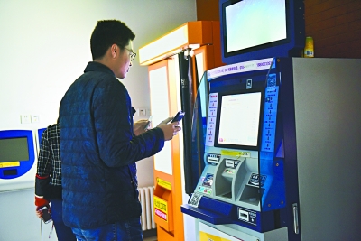 昨天,在中国人民大学,学生通过自助取票机取票。本报记者 和冠欣摄