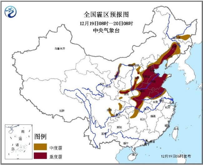 中央气象台12月19日6时继续发布霾橙色预警。