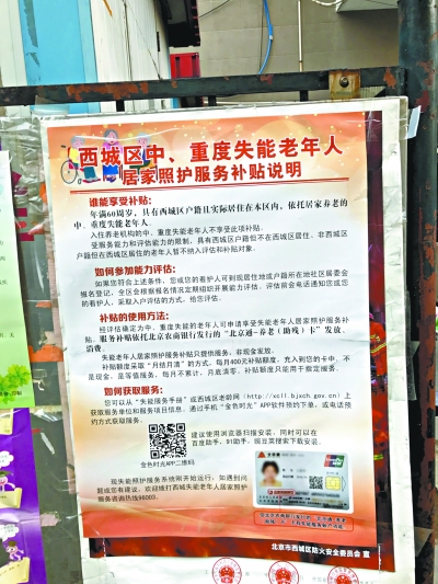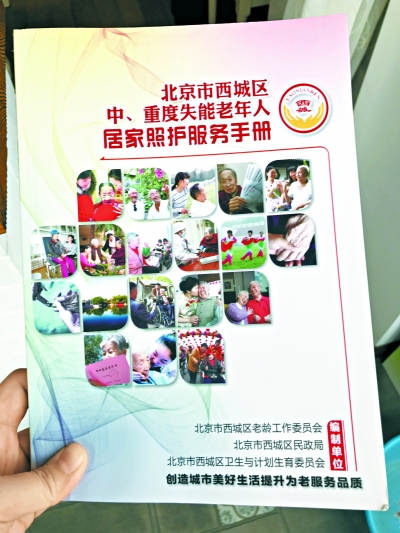 去年年底,社区居委会的工作人员上门,为刘阿姨的母亲进行养老服务需求评估,定为失能等级。上个月中旬,居委会忽然打电话通知刘阿姨,失能老人补贴政策已经开始实施,400元补贴款已经打到刘阿姨老母亲的养老助残卡上,并且今后每月都会有400元用于购买指定的养老服务。这突如其来的好消息让刘阿姨惊喜不已。她从居委会领回一本《北京市西城区中、重度失能老人居家照护服务手册》,只见上面详细列举了75家机构提供的50余项服务。经过仔细挑选,她决定预约白纸坊街道养老照料中心的助浴套餐和理发按摩套餐试一试。