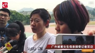 广外被害女生的母亲接受采访。 视频截图