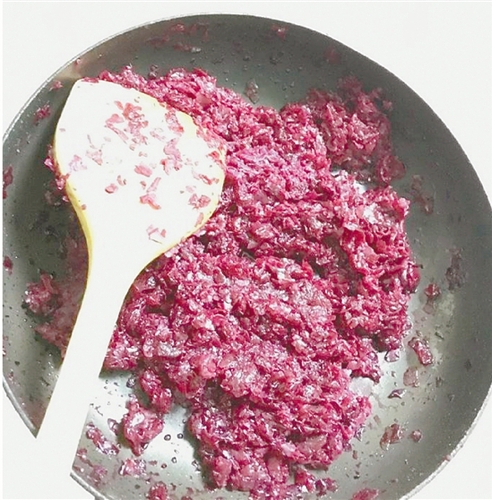 她将大部分玫瑰的花瓣一朵一朵地摘下来,放进一个大盆子里。清洗了一遍,又用水泡了一下,稍微晾了一下,碾碎之后,一股脑地倒进平底锅里,加上水和糖,熬了五六分钟。“当时锅里咕噜咕噜的,我就馋了。想想看,只要再做些饼皮,玫瑰花饼,妥妥的,说不定就是云南当地的味道呢?!?/p>