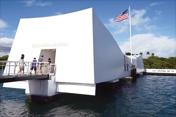 图为坐落于夏威夷珍珠港中的亚利桑那纪念馆。