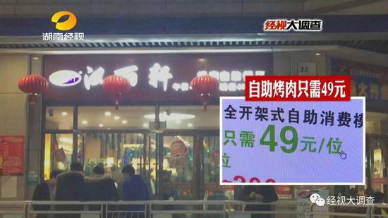 在长沙岳麓区文轩路的这家北京汉丽轩自助烤肉店,宽敞的餐厅里座无虚席。菜品摆放着各种牛肉、羊肉等上百种菜品,顾客只需花费49元就可以进入店内随便吃。牛肉通常是客人的首选。