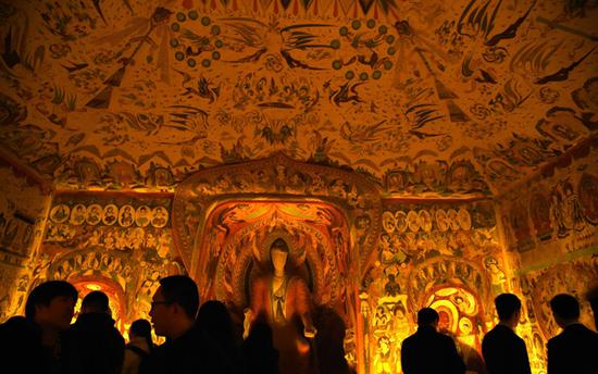 “藏经洞是敦煌石窟不可或缺的一部分,观众来参观藏经洞复原石窟,既可以欣赏石窟的建筑风格,从20幅绢纸画临摹复制品中一窥当年宗教、社会、生活的方方面面,还能从出土文献真迹中了解书法演变的过程?!钡耘舾嫠呒钦?。