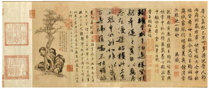 他赋予书法极高的地位,而这极高的地位则源自于其自然本源。他同时认为,要在自然的基础上“囊括万殊,裁成一相”,这就强调了人力的作用。书法与圣人的经文相表里,其趣幽深非言语可以形容,只有依附人之灵性才可通其妙道。