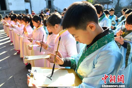 12月29日,江西婺源县熹园举行蒙童开笔礼迎新年活动?!〕绦碌隆∩?/p>