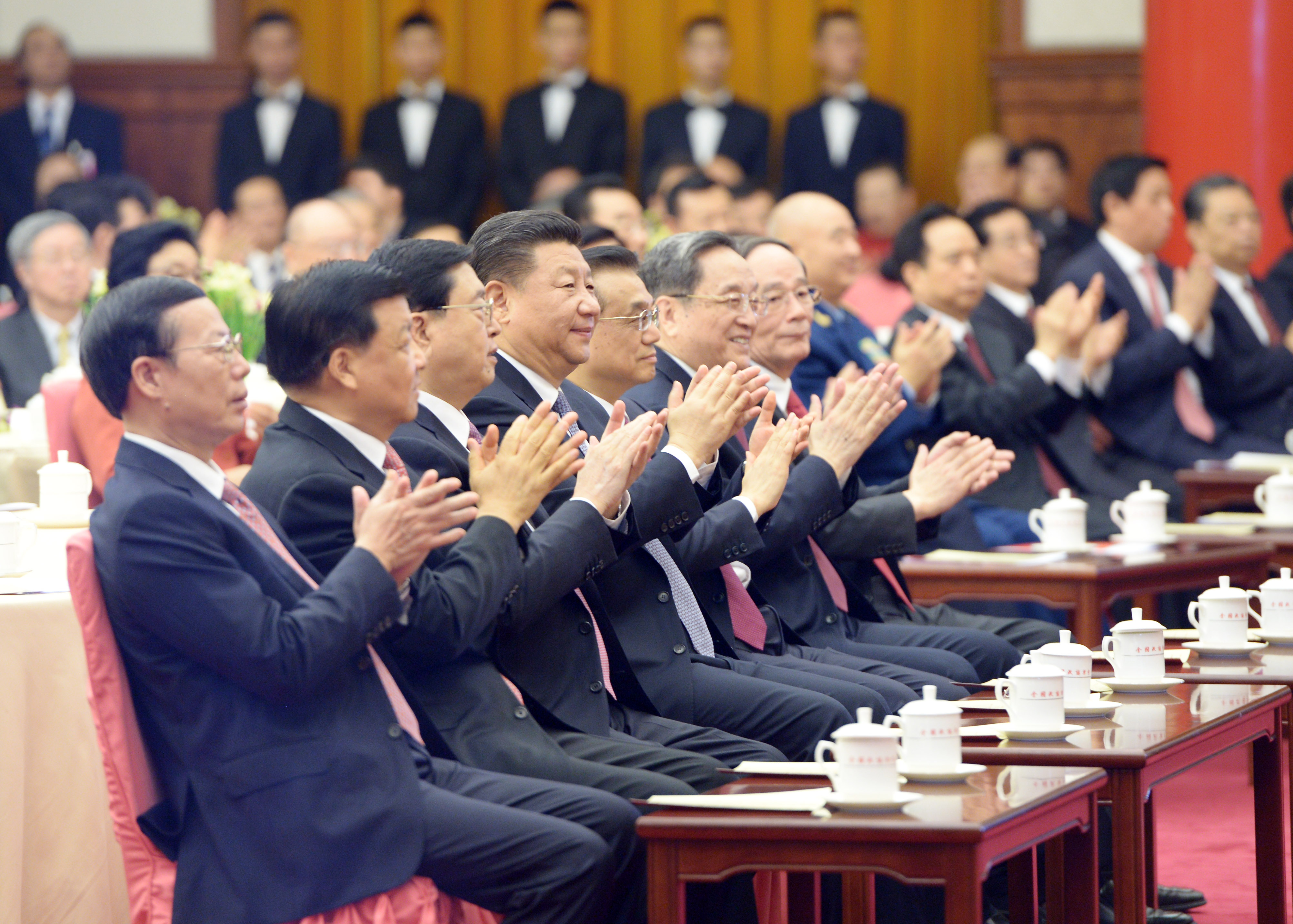 2016年12月30日,全国政协在北京举行新年茶话会。党和国家领导人习近平、李克强、张德江、俞正声、刘云山、王岐山、张高丽出席茶话会并观看演出。人民政协网记者 姜贵东摄