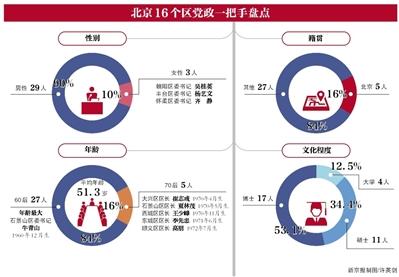 以党委班子为例,共有14个区的区委书记易人,仅有昌平区委书记侯君舒和密云区委书记汪先永2人仍任原职,朝阳、海淀两区在5年内,迎来了3任区委书记。