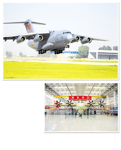 “我们不仅要有与世界一流同台竞技的自信,更该为那些印刻着中国自主研制烙印的飞机感到骄傲?!狈勘?2016年,中国大飞机家族传来的两个好消息都来自中航工业——7月6日,中国自主研制的首款大型多用途运输机“鲲鹏”运-20飞机正式列装空军,中国凭借自主创新正式进入全球大飞机“俱乐部”;7月23日,大型水陆两栖飞机AG600在珠海下线,这是当今世界在研的最大一款水陆两栖飞机。在本届航展上,两型大飞机比肩向海内外公众展示了中国力量,它们共同的关键词是自主创新。