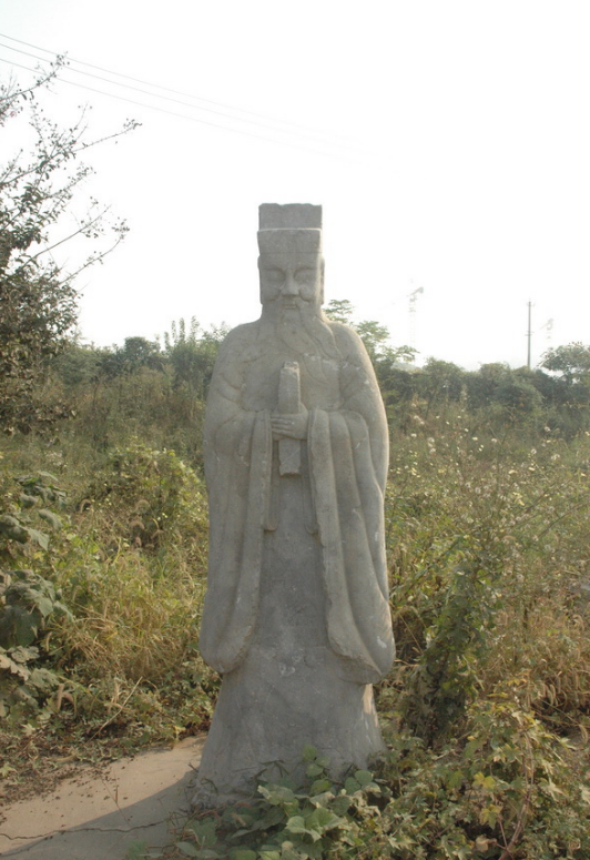 姚南村明失考墓神道石刻,属明代中后期的雕刻风格,不似南京明初功臣墓神道石刻那样高大厚实、肃穆凝重,而是显得瘦长挺拔、生动写实,特别是一对文官和一对武将的造型颇佳,其面部的刻画也一改南京明初功臣墓石翁仲面部表现力的不足,对人物肌肉和五官的塑造达到了较高的水准。