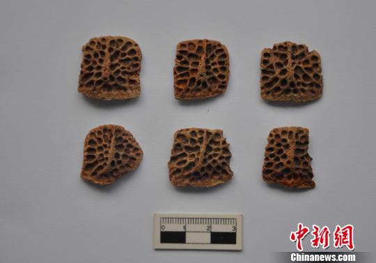 出土的鳄鱼骨板。 陕西省考古研究院 摄