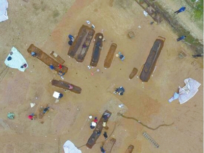 成都市蒲江县一楼盘工地发现战国船棺墓群。