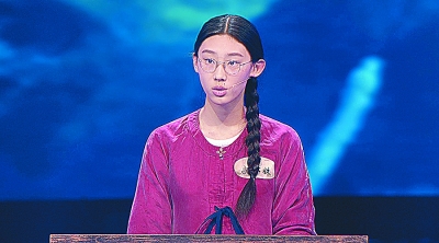 《中国诗词大会》选手武亦姝在比赛中。光明图片