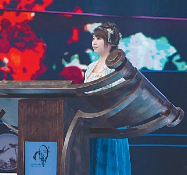 《中国诗词大会》选手张淼淼在比赛中。光明图片
